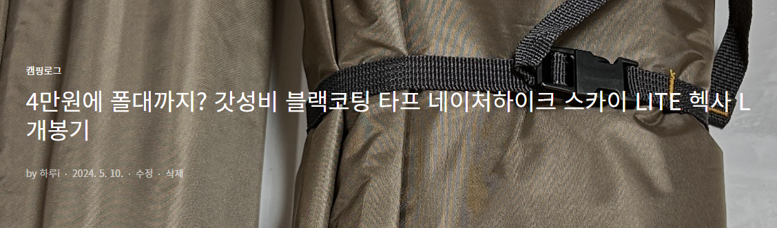 | 4만원에 폴대까지? 갓성비 네이처하이크 헥사 타프 블랙 코팅 스카이 LITE L 개봉기 (0) | 2024.05.10 |