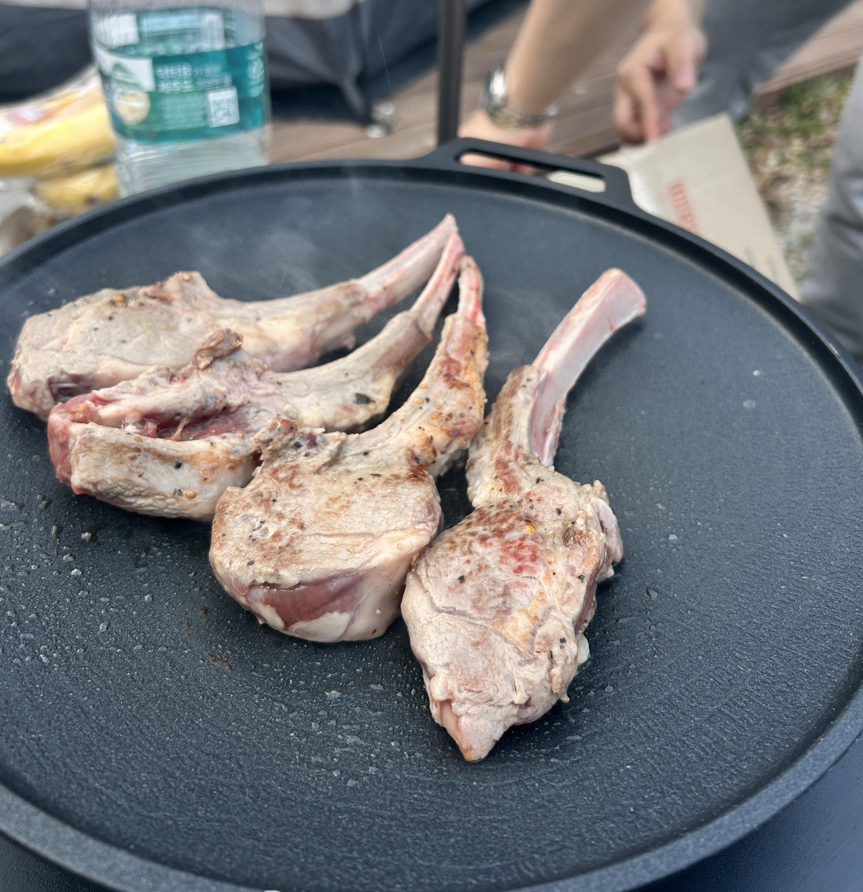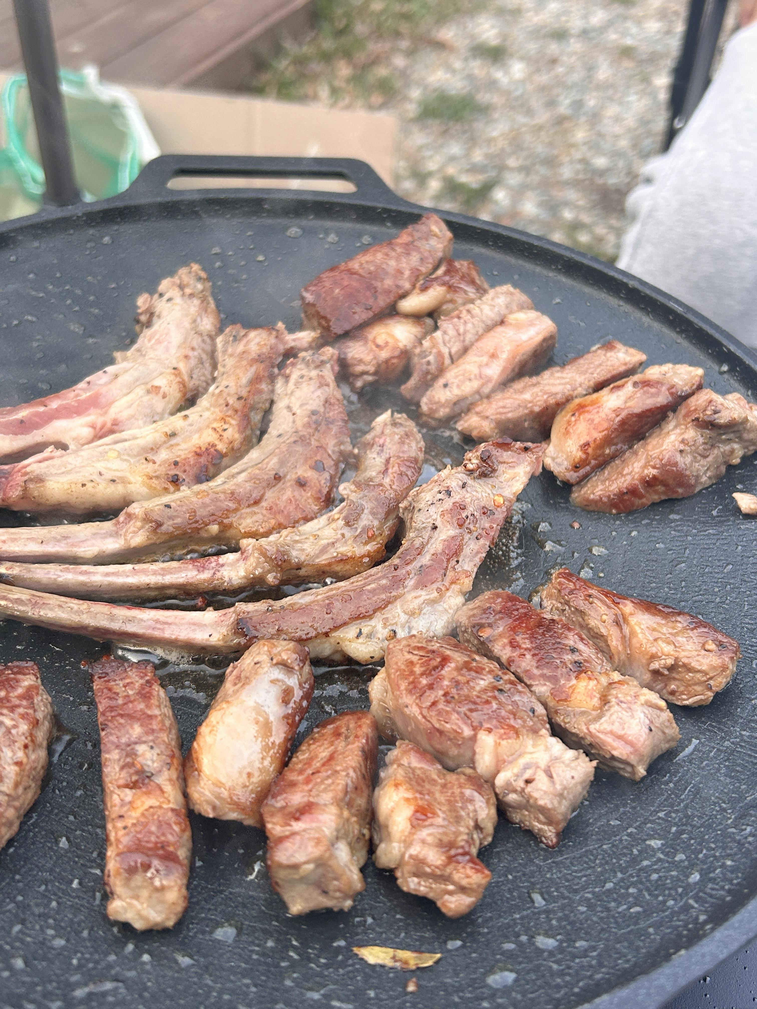 2차로 양고기를 굽기 시작했다. 숯불에 구우면 더 맛있지만 그릴을 놓고온 관계로 그리들로 대신함