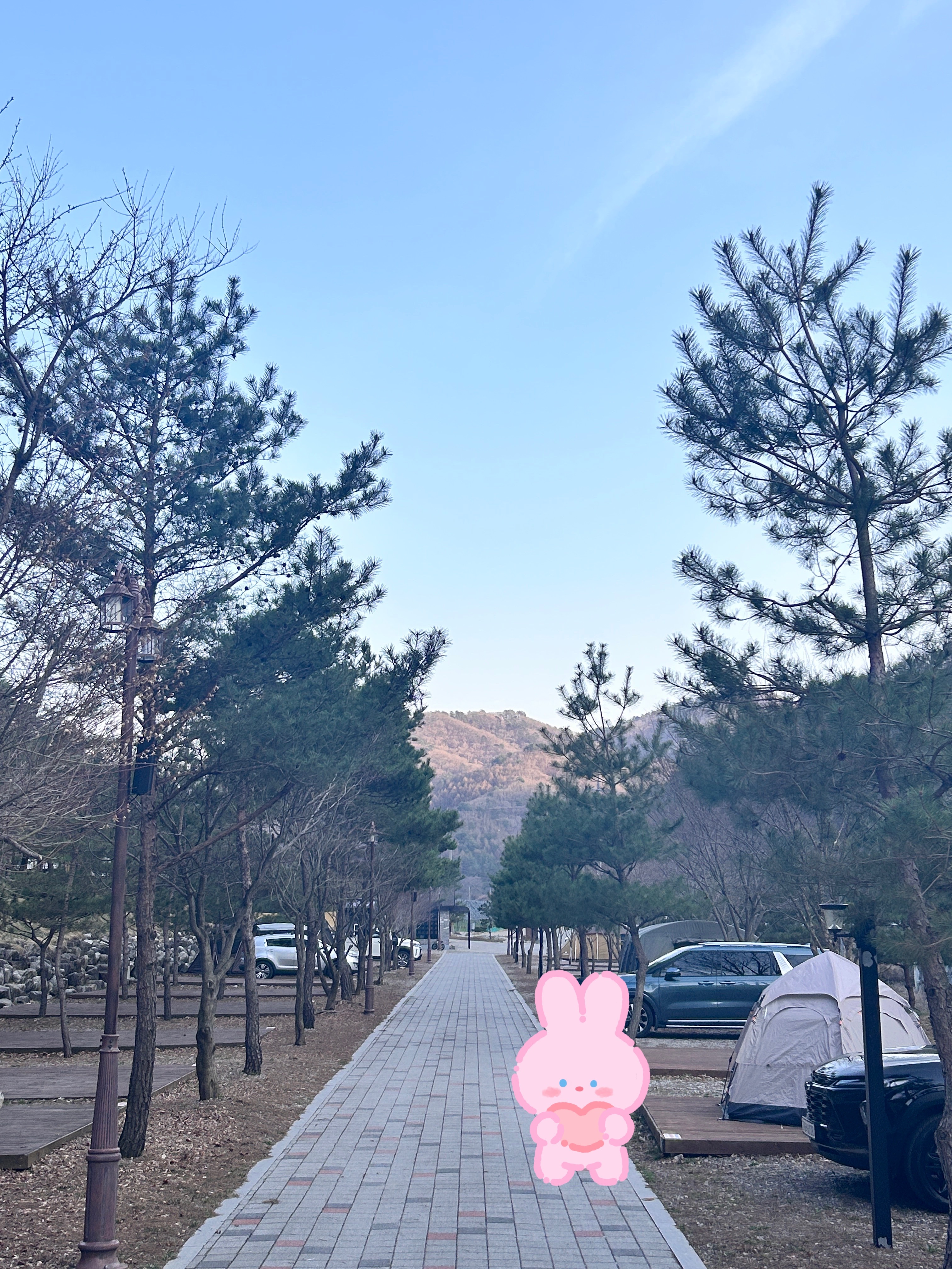 아래쪽 사이트는 중앙 길을 기준으로 이렇게 양쪽으로 나있다. 각 사이트에서 보는 뷰보다 화장실 나와서 보이는 이 뷰가 더 좋았음