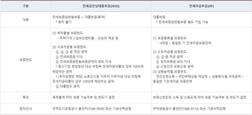 2-1) 전세금 안심대출보증 HUG =전세보증금의 100% 대출