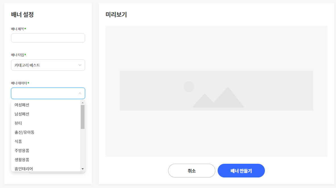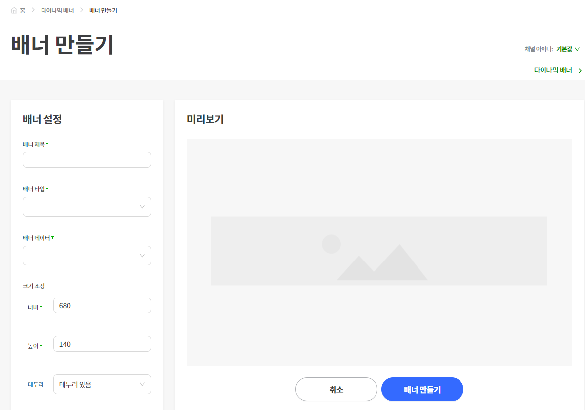4. [배너 생성] 버튼을 누르면 배너 만들기로 넘어가집니다.