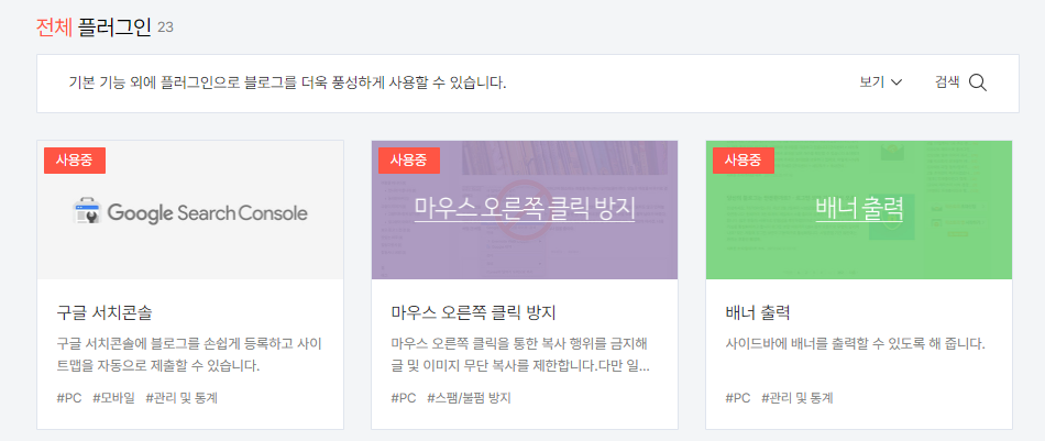 관리 페이지의 왼쪽 메뉴, [플러그인]으로 들어가서 배너출력 메뉴를 누릅니다.