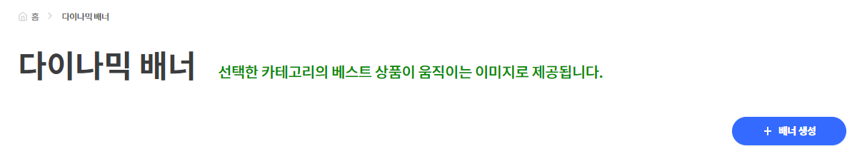 3. [다이나믹 배너]로 넘어가면 [배너 생성] 버튼이 보입니다.