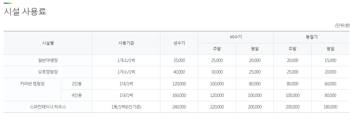 장호비치 캠핑장 이용료