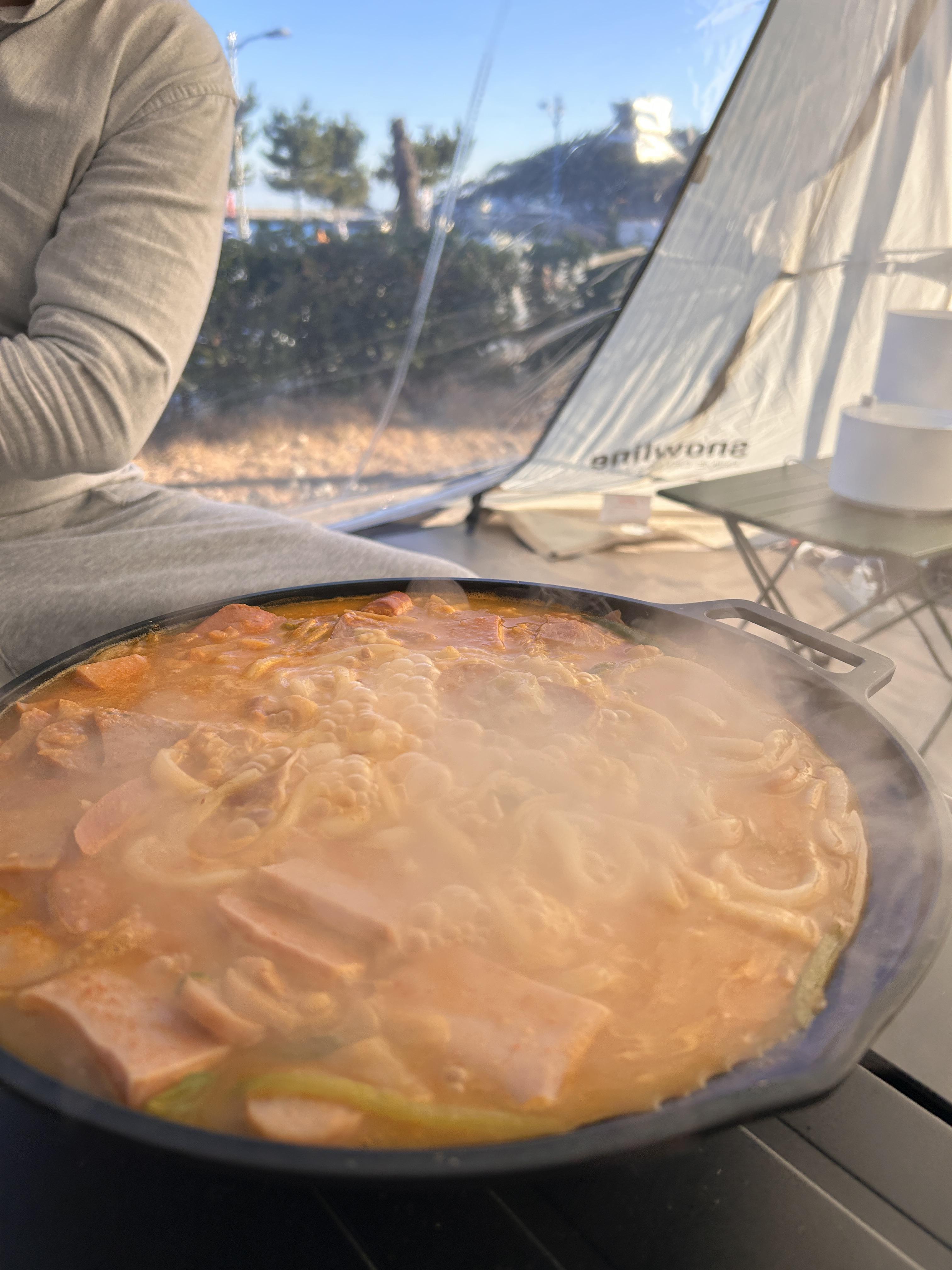 장호비치캠핑장이 서울에서는 꽤나 거리가 있는지라, 도착하니 4시 반, 피칭하고 세팅하니 해가 지고 밥 먹을 시간이라 급히 밀푀유를 세팅했다.