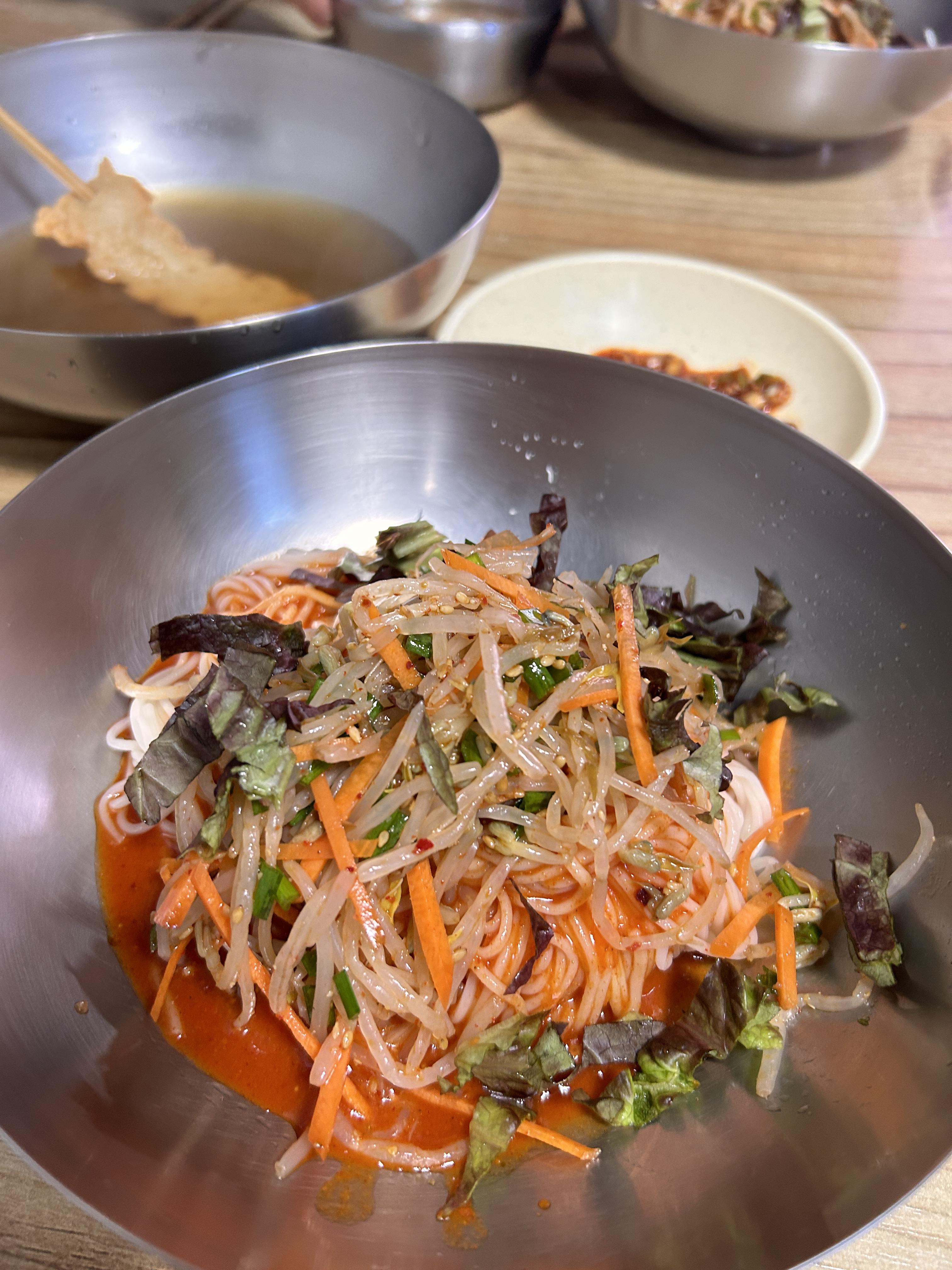 우리는 비빔 국수를 시켰다. (아마 2천원이었던 걸로 기억)