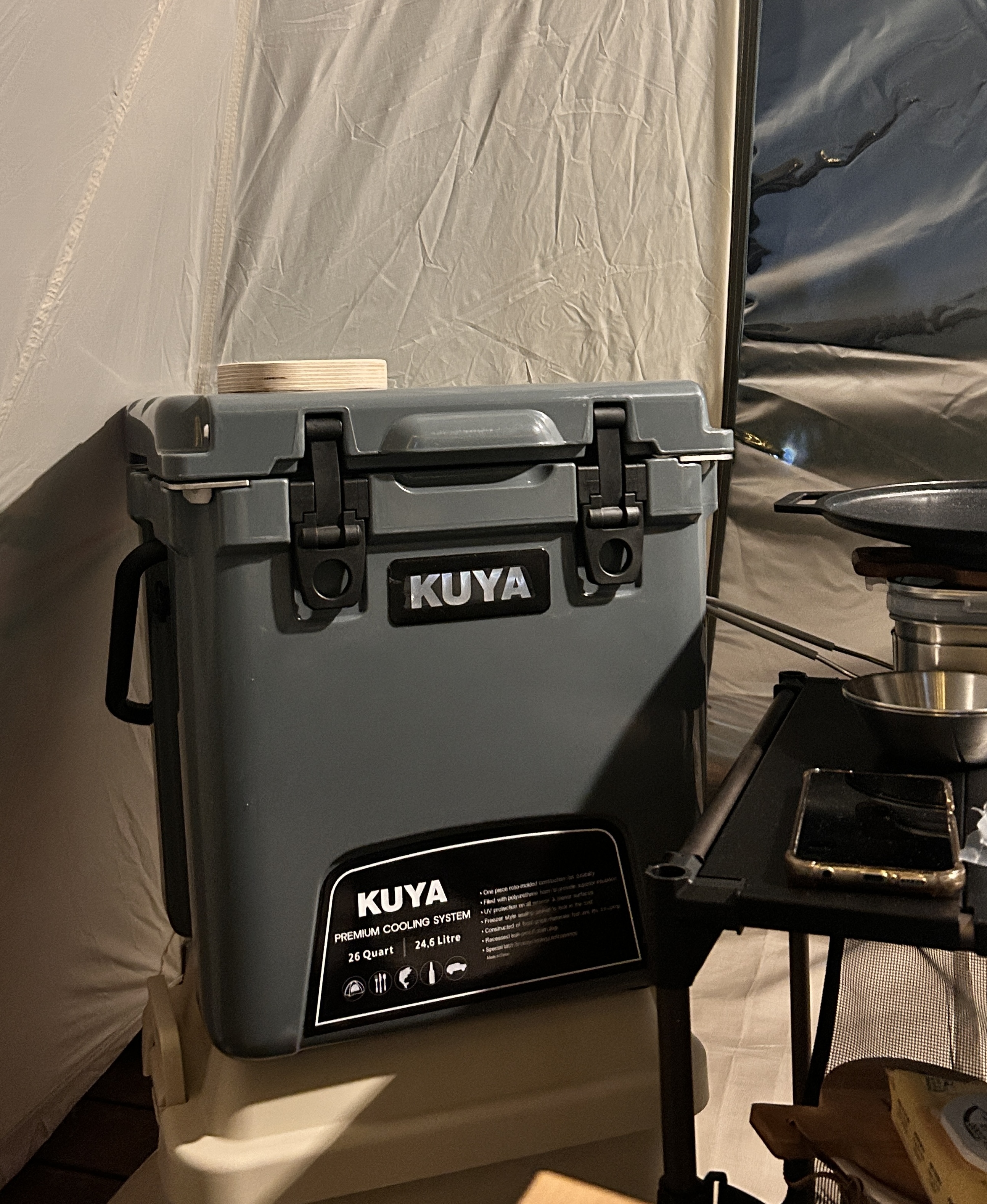 요건 이번 캠핑을 위해 급하게 구매했던 쿠야 쿨러 28L. 세로로 길쭉하게 긴 모양이 마음에 들어 구매했는데 빈 쿨러 무게가 10kg에 육박하는 바람에 잘 안 들고다니게 된다...그리고 사이즈가 애매해서 밀푀유 나베 같은 큰 밀키트는 안 들어감. 못산템...그래도 미리 전날에 소분해두면 쓸 수는 있겠다.