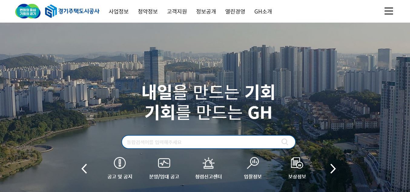 보통 LH 나 SH는 잘 알아도 GH까지 아시는 분들은 드믄데요, GH는 경기도 지역의 임대 주택 정보 탐색 및 청약신청이 가능합니다.