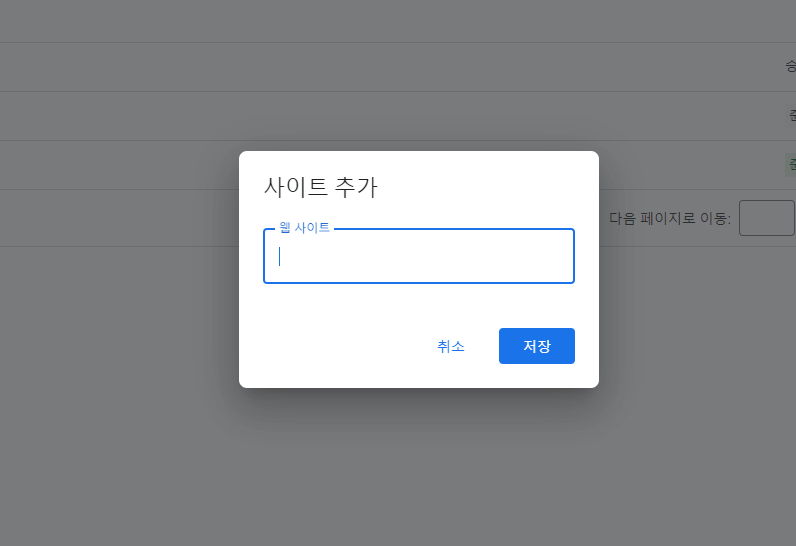 그럼 바로 사이트 추가 팝업이 뜨는데요, 새로운 티스토리 수익형 블로그 주소를 입력해준 뒤, 저장을 누르면