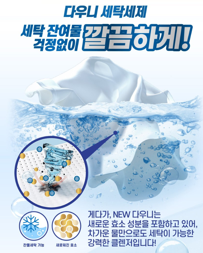 - 강력한 세정력: 오염물질과 찌든 때를 깨끗하게 제거해줘서 세탁 후 뽀송뽀송한 옷을 입을 수 있어요. 깨끗함이 남다르죠!