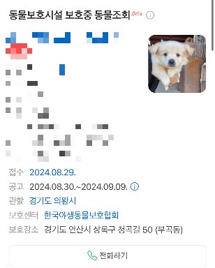 하지만 그날따라 왜인지 유기동물보호 정보를 검색해보고 싶었다. 그렇게 내 눈에 띈 작은 유기견