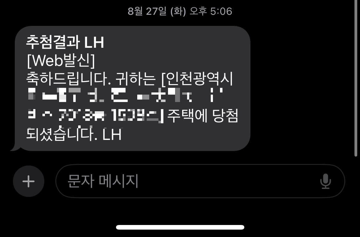 원래 30일 당첨 발표일이었는데, 3일 먼저 당첨 문자가 왔다! 사실 서울권역의 다른 행복주택도 지원했었다. 다 떨어지고 인천만 당첨된 것! 여기까지 당첨 안 되면 어떡하나 고민이었는데 나이스타이밍.