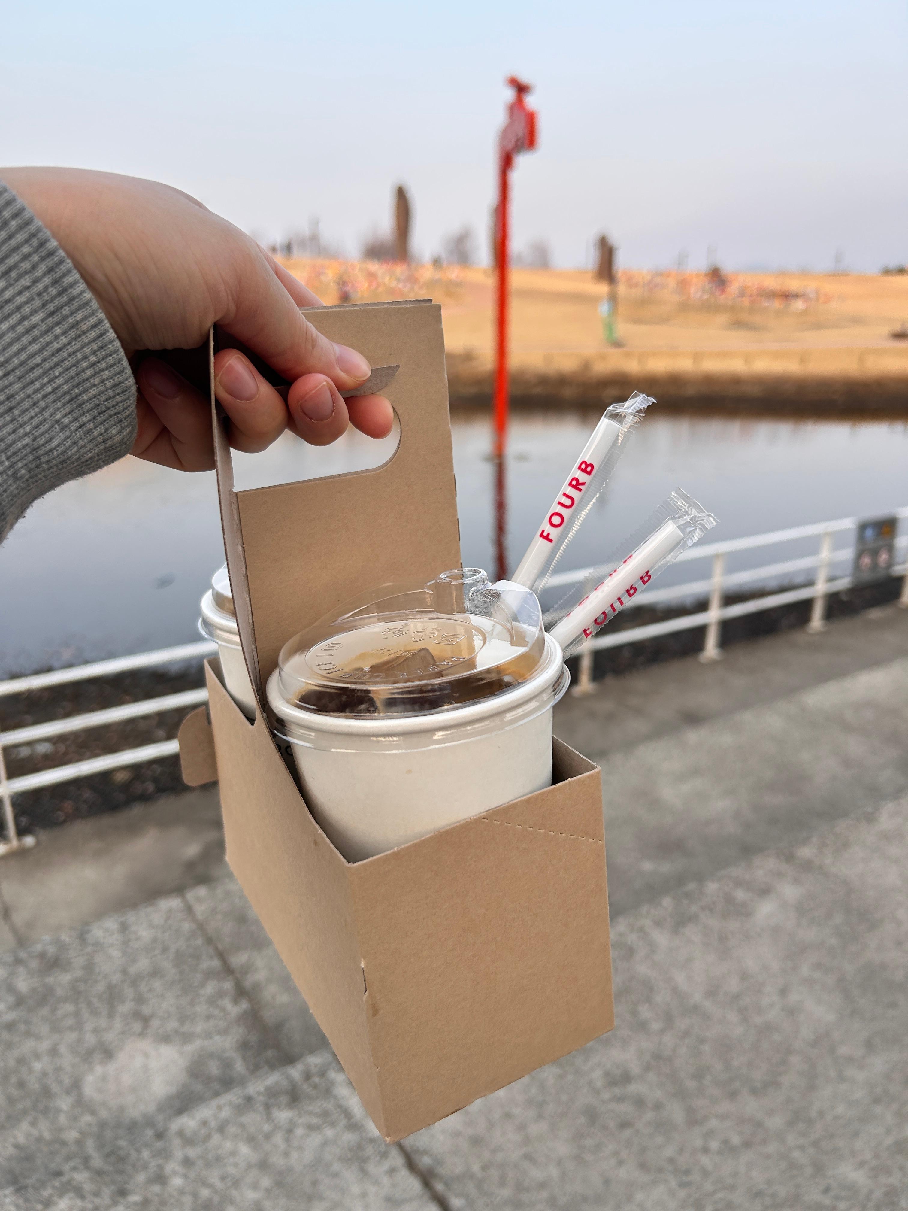 커피를 테이크아웃해 목을 축이기로 했어요.