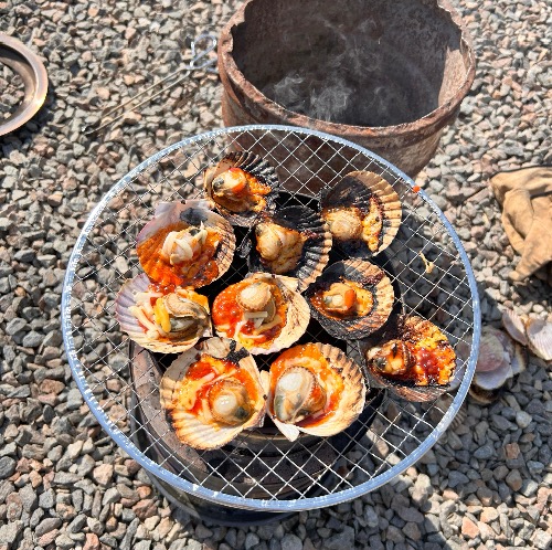 아침 겸 점심은 가리비 구이.