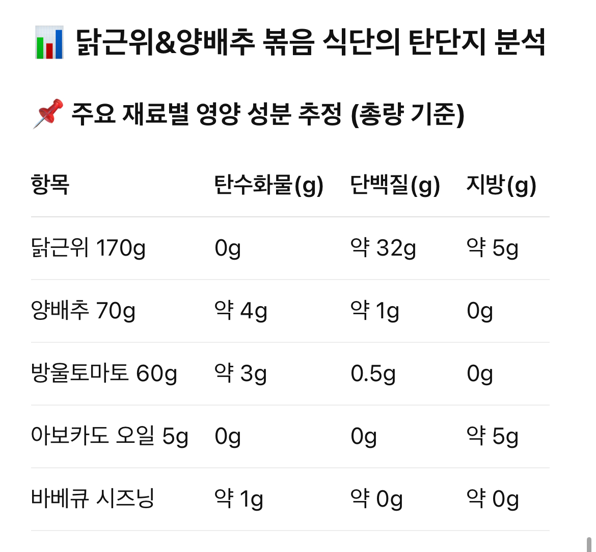 이 양을 기준으로 챗지피티에게 영양소 계산도 해달라고 해보았어요.